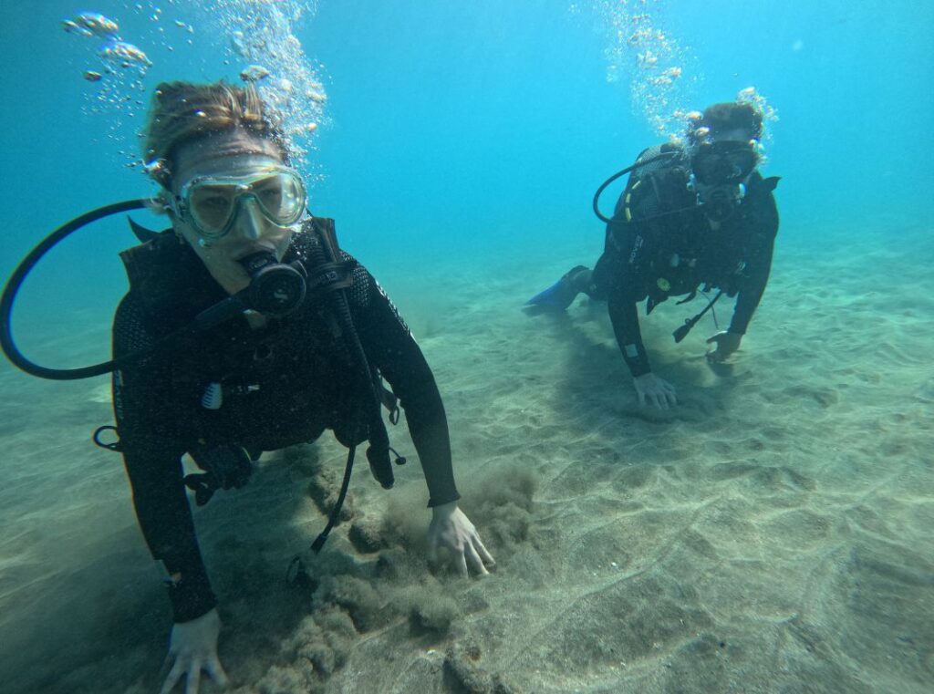 Până să intri în apă, totul pare „ok, facem o activitate”. Te echipezi, îți pui costumul, îți aranjezi masca, primești explicații, totul e clar și organizat. Dar există un moment foarte specific în care creierul face click: „stai… noi chiar intrăm în ocean cu echipamentul ăsta și respirăm acolo.”
