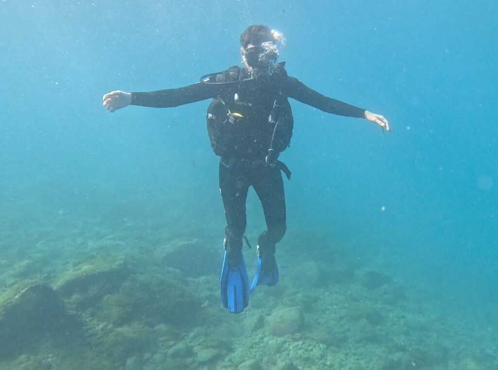 Partea cea mai interesantă la diving (mai ales prima dată) e că e o lecție de încredere. Nu în „curaj”, ci în proces. Pentru că instinctul tău îți spune toată viața că sub apă nu ai cum să respiri. Și acum… respiri. Normal. Calm. Bule. Ritm.